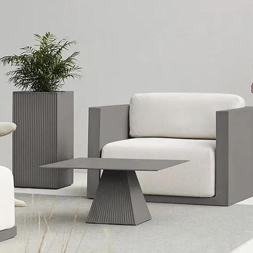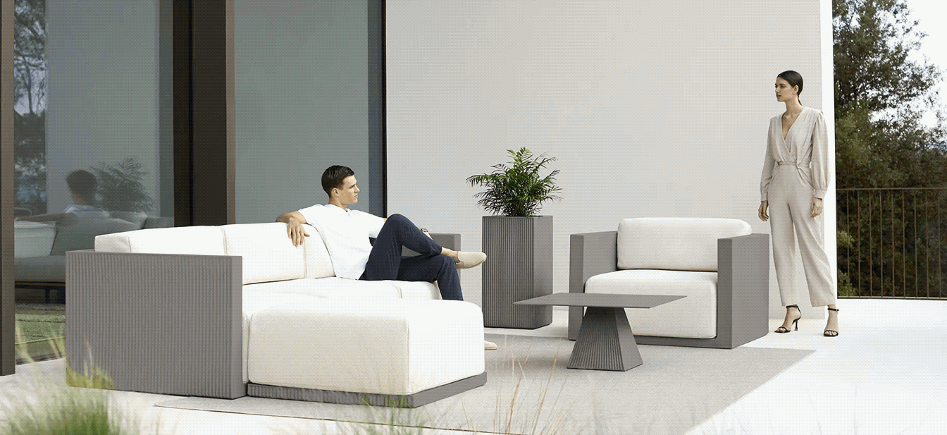 Inspired by the roaring twenties, Madrid architect Ramon Esteves calls his Gatsby collection an “American Dream.”  The New Gatsby sofa and planters are crafted from polyethylene using a rotational molding technique, giving the impression of a fluted glass style that echoes the Art Deco era and the exuberant and sophisticated spirit of jazz age. Completing the look is the Gatsby lamp, a technological marvel that offers adjustable light intensity, color options, and a self-sufficient power source.